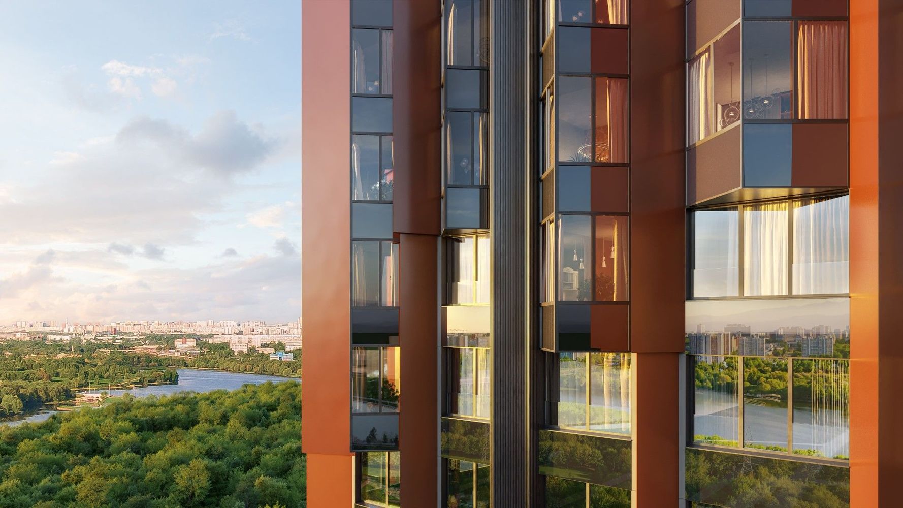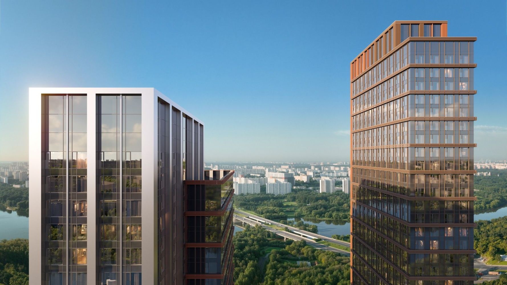 Из окон большинства квартир в «ВЕЙВ» открывается удивительный панорамный вид на живописные пейзажи парков и водоемов, которые становятся источником вдохновения: собственная набережная Москвы-реки, Братеевский каскадный парк, парк имени 850-летия Москвы на другой стороне реки, парк «Борисовские пруды» и одноименный водоем, а также парк «Царицыно» с каскадом прудов.