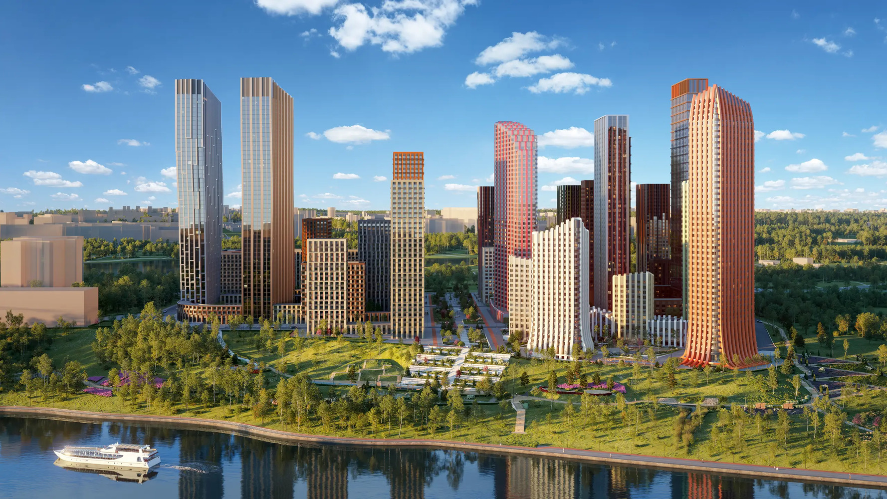 Центральный пешеходный бульвар-парк проходит через весь квартал, соединяя между собой парк «Борисовские пруды» и собственную набережную «ВЕЙВ». Он будет разделен на три зоны: центральная зона с беседками и открытыми площадками, детская зона для отдыха и игр, а также оформленные дорожки со скамейками для прогулок. Авторский ландшафтный дизайн бульвара позволит сравнить его с линейным парком.