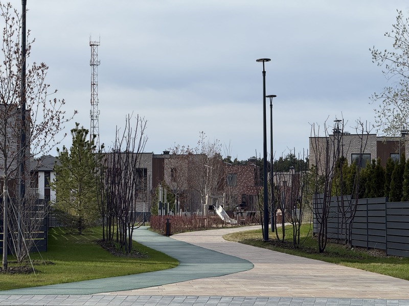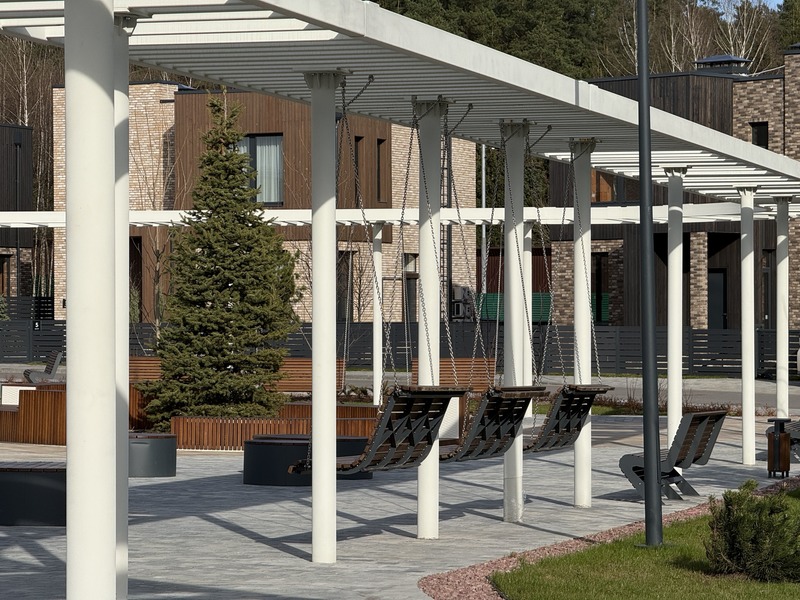 В поселке полностью завершено благоустройство и озеленение. На центральной площади с теневым навесом оборудованы амфитеатр, парковые качели, спортивная и детская площадки, столы для шахмат и игры в настольный теннис. Вдоль пешеходного бульвара протяженностью 600 метров размещены вело-беговая дорожка, гамаки, три детские игровые зоны и спортивная площадка.