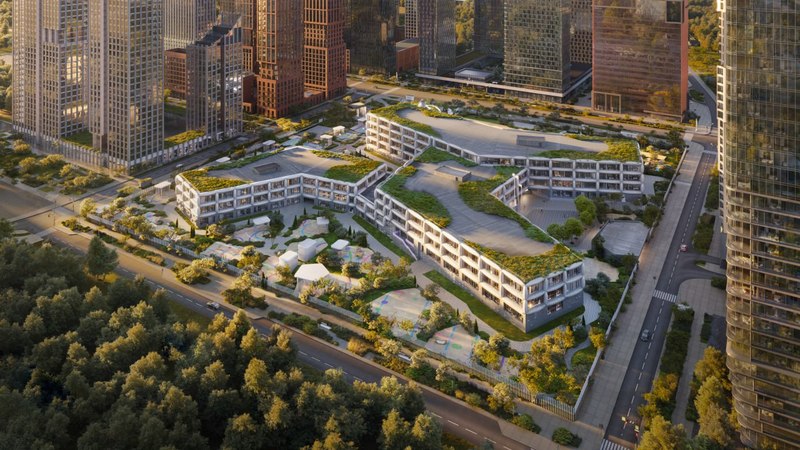 Новый образовательный комплекс в виде объемного конструктора из молекул будет построен девелопером MR на территории жилых кварталов «СЕТ» и «Веер». Здание предназначено для рейтинговой государственной школы №1329. Строительство начнется в 2026 году.