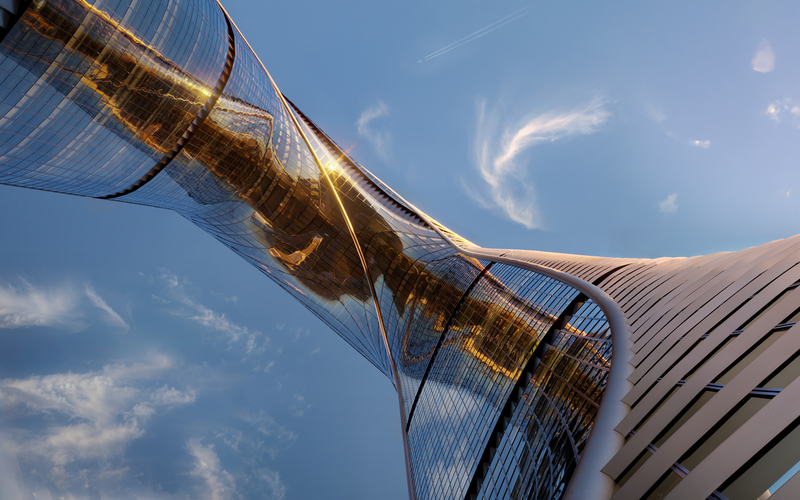 Облик здания в стиле эмо-тек отсылает к ленте Мебиуса — фасад со сплошным витражным остеклением формирует замкнутую плоскость, сложный рельеф которой вечером подчеркивает акцентная архитектурная подсветка. Это знаковый объект с выдающейся архитектурой будущего, который подчеркнет статус делового центра Москва-Сити. Благодаря своей высоте и выразительности башня буквально станет новой архитектурной доминантой локации.