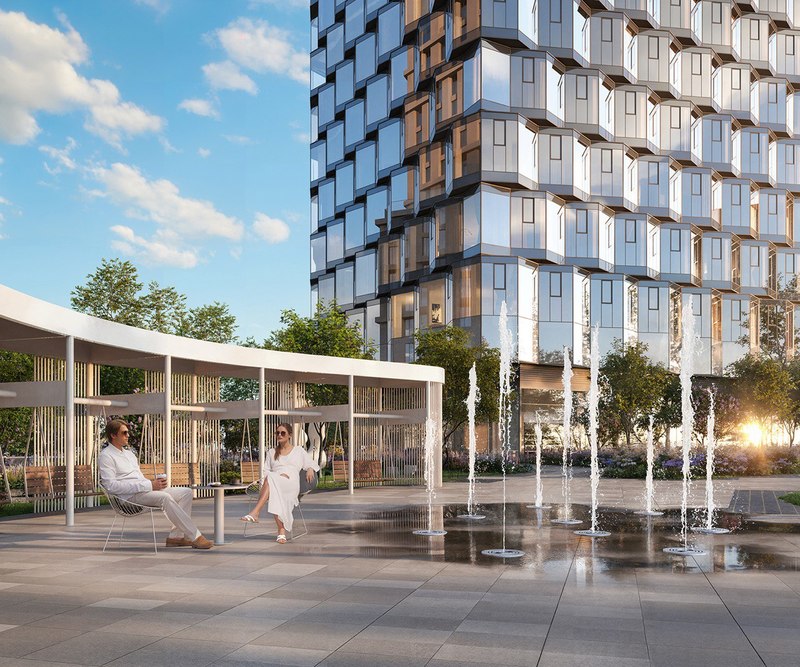 Бюро «Дружба» работает на стыке архитектуры и социальной психологии. В благоустройстве МИRА этот подход определил особенности планировки и эстетику всех элементов. Центральное пространство двора отдано площади с фонтаном и качелями. От нее расходятся прогулочные дорожки. Вдоль маршрутов в пышной зелени скрыты разные по назначению площадки: для тихого отдыха, детских игр, йоги, спорта и работы на свежем воздухе.