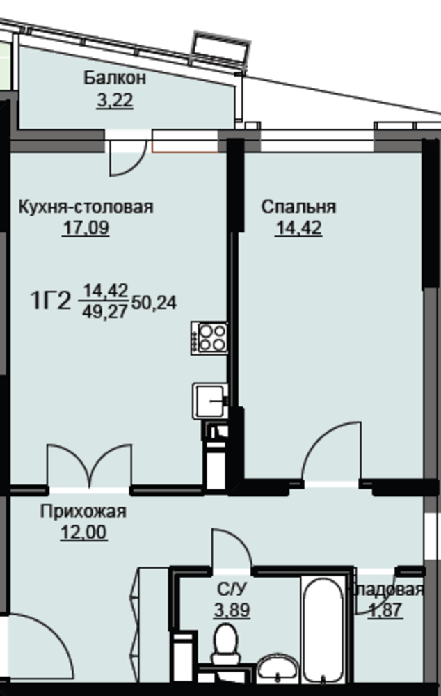Общая площадь50.8 м2