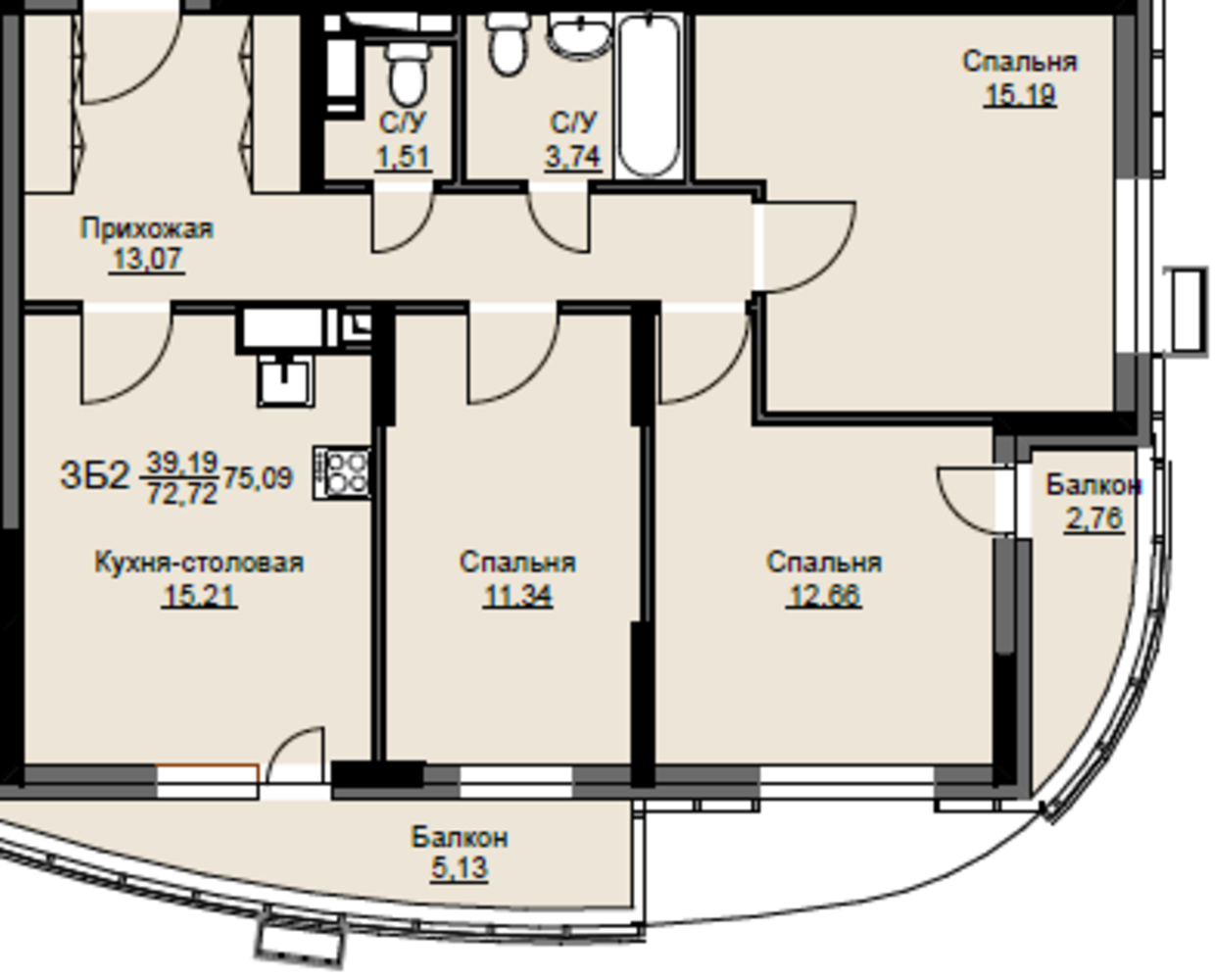Общая площадь74.7 м2