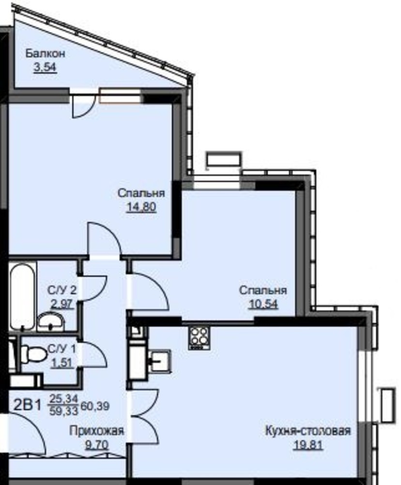 Общая площадь60.8 м2