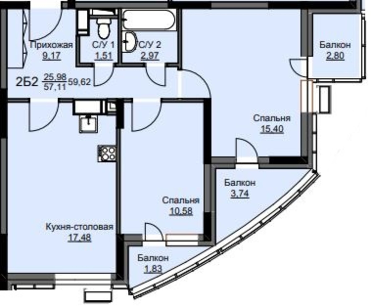 Общая площадь60.1 м2