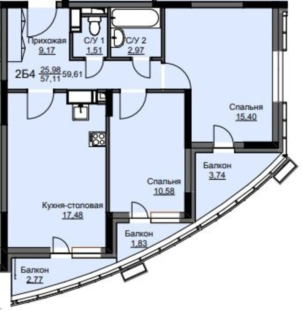 Тип предложения2 комнатная квартира