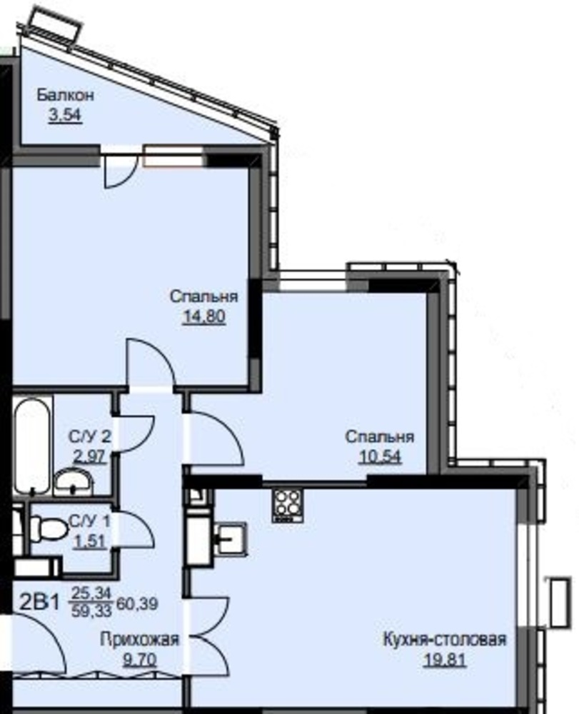 Общая площадь60.9 м2