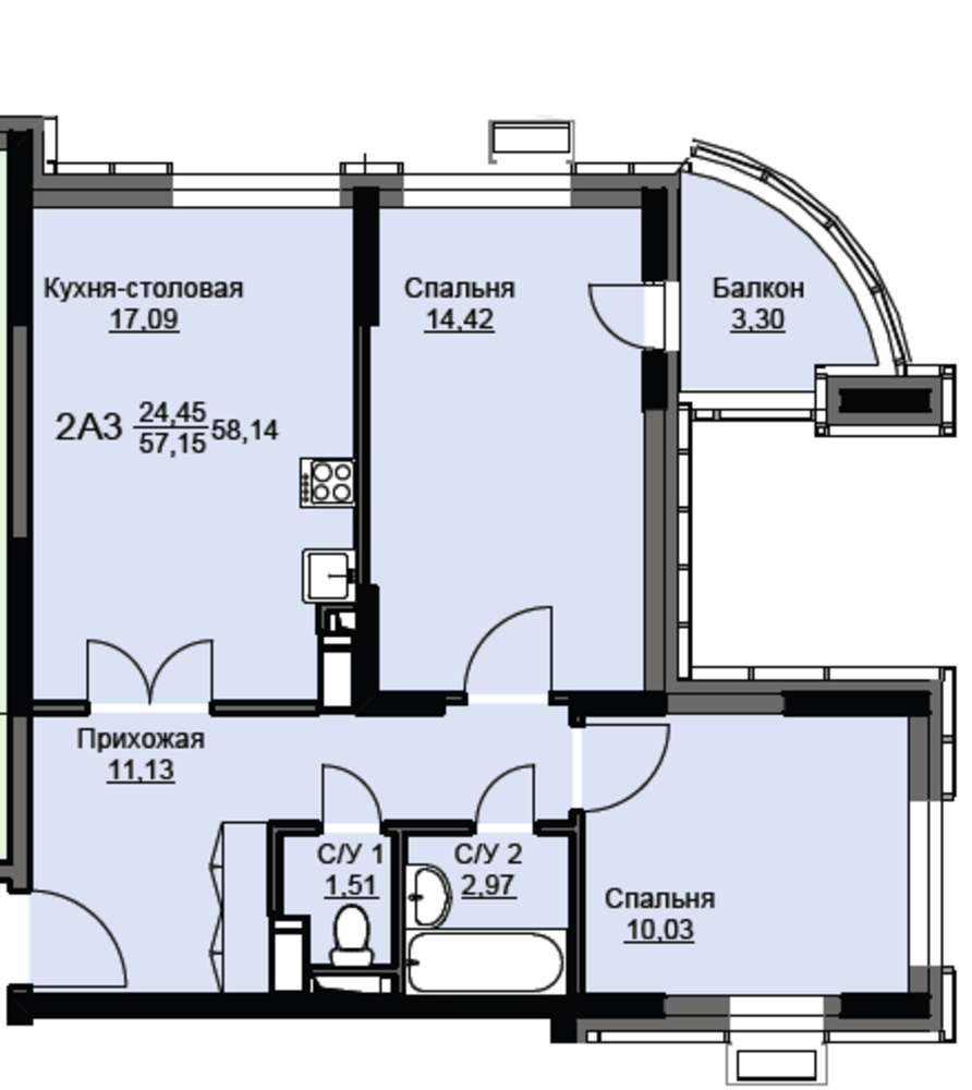 Общая площадь58.5 м2