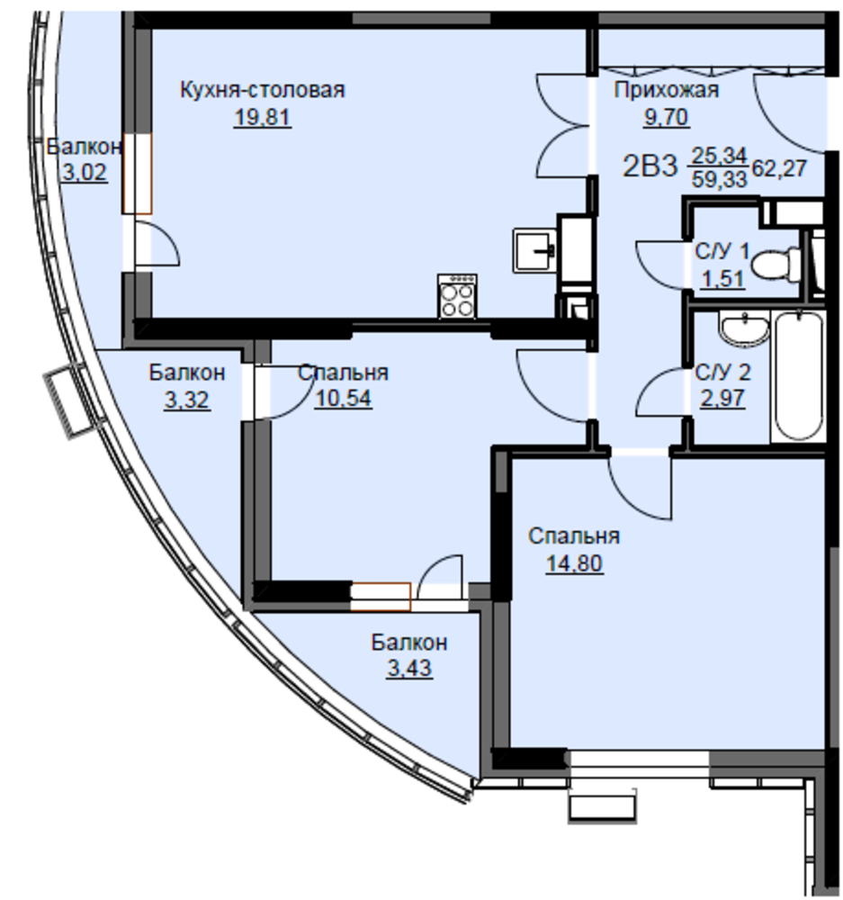 Общая площадь63.1 м2