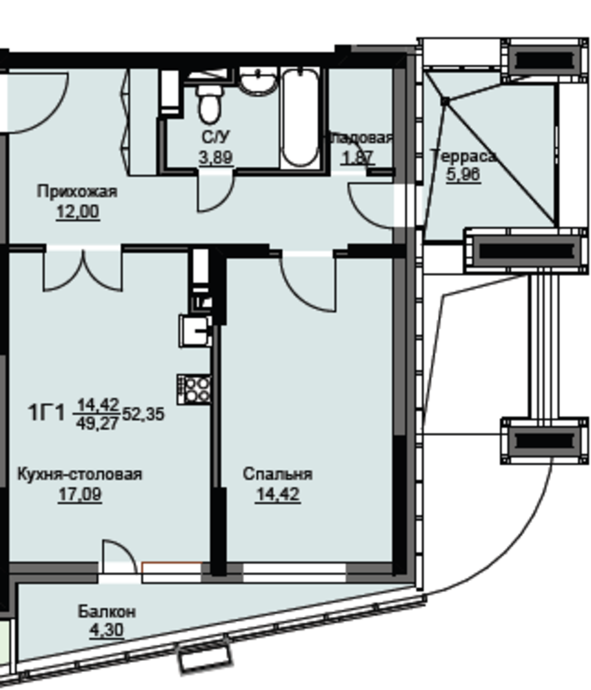 Общая площадь53.0 м2