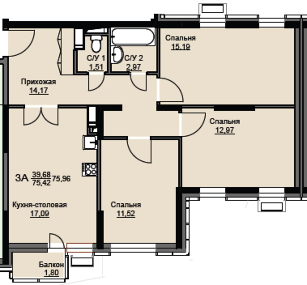 3 комнатная квартира