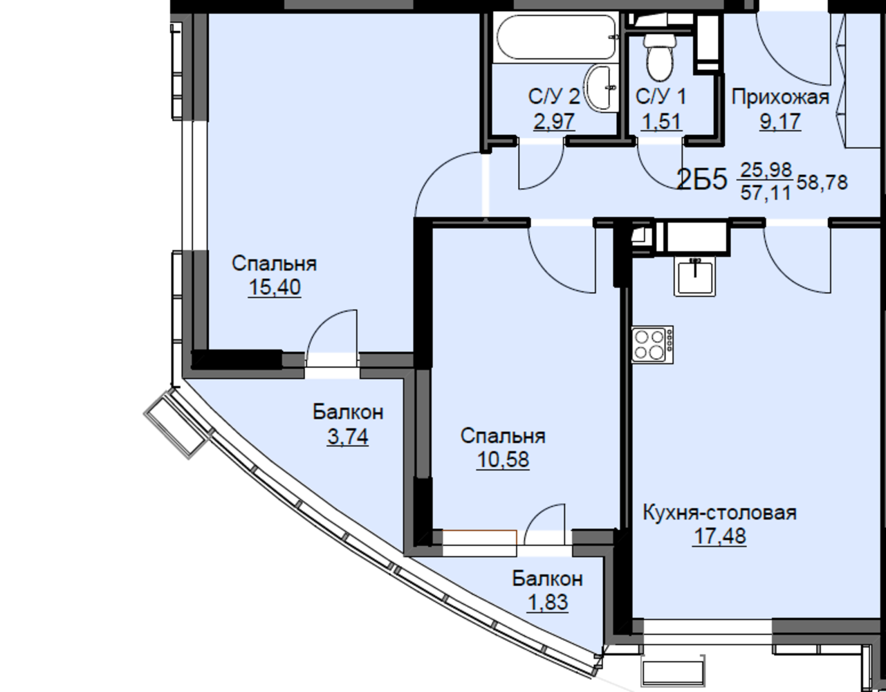 Общая площадь59.2 м2