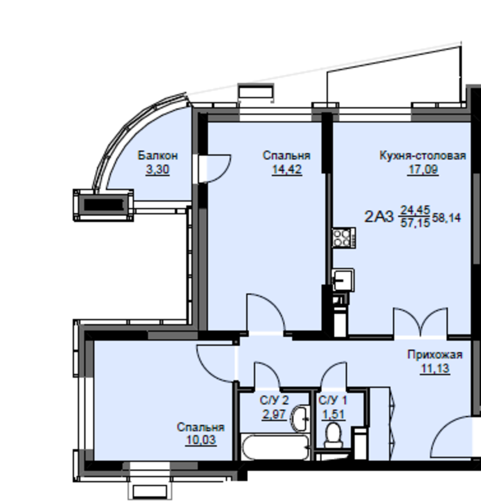 Общая площадь58.1 м2