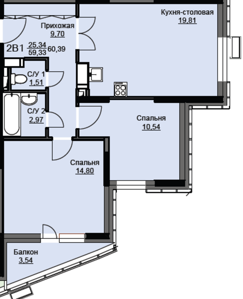 Общая площадь60.9 м2