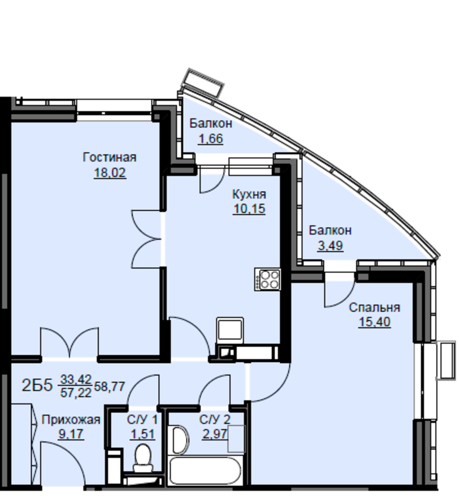 Общая площадь59.2 м2