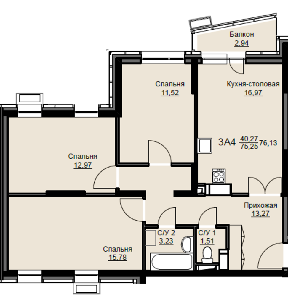 Общая площадь76.7 м2