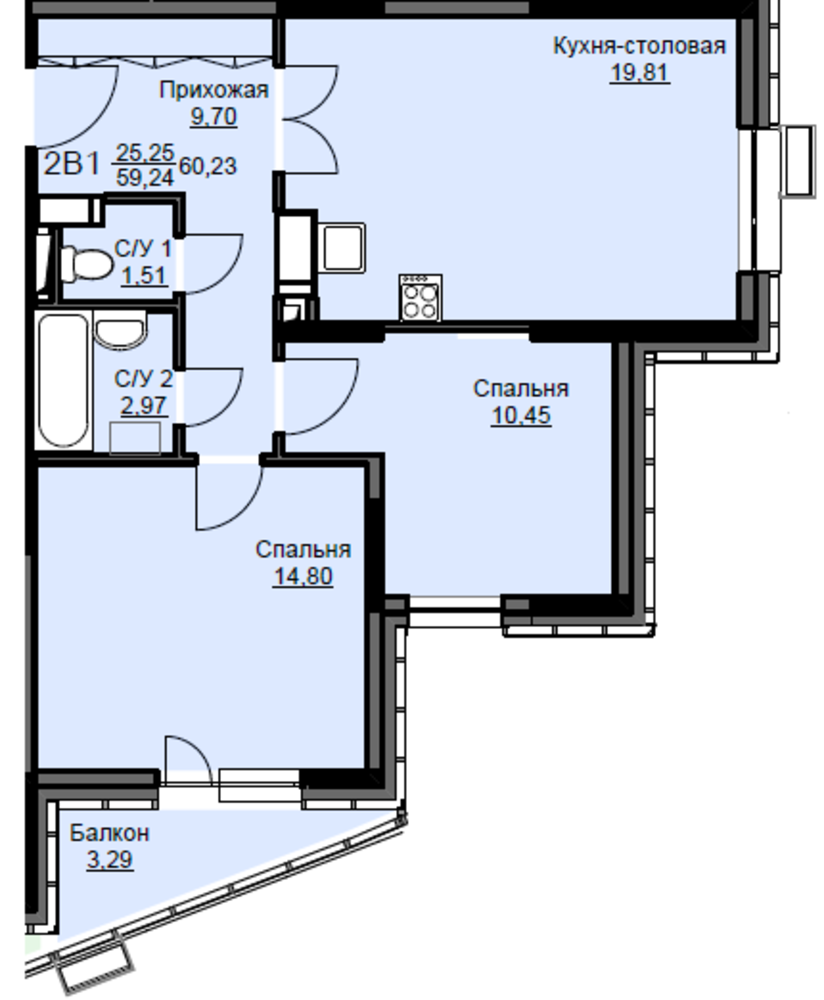 Площадь кухни19.81 м2