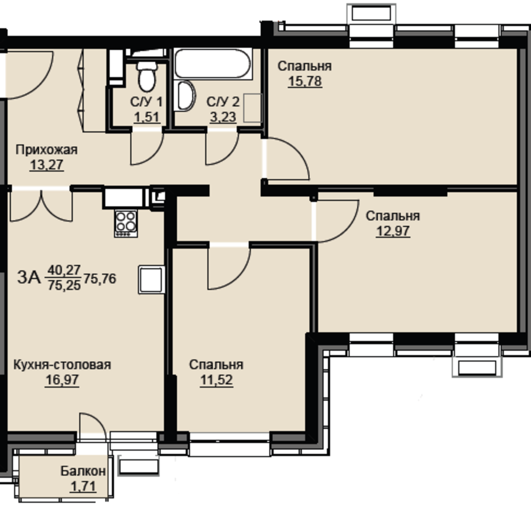 Общая площадь76.5 м2