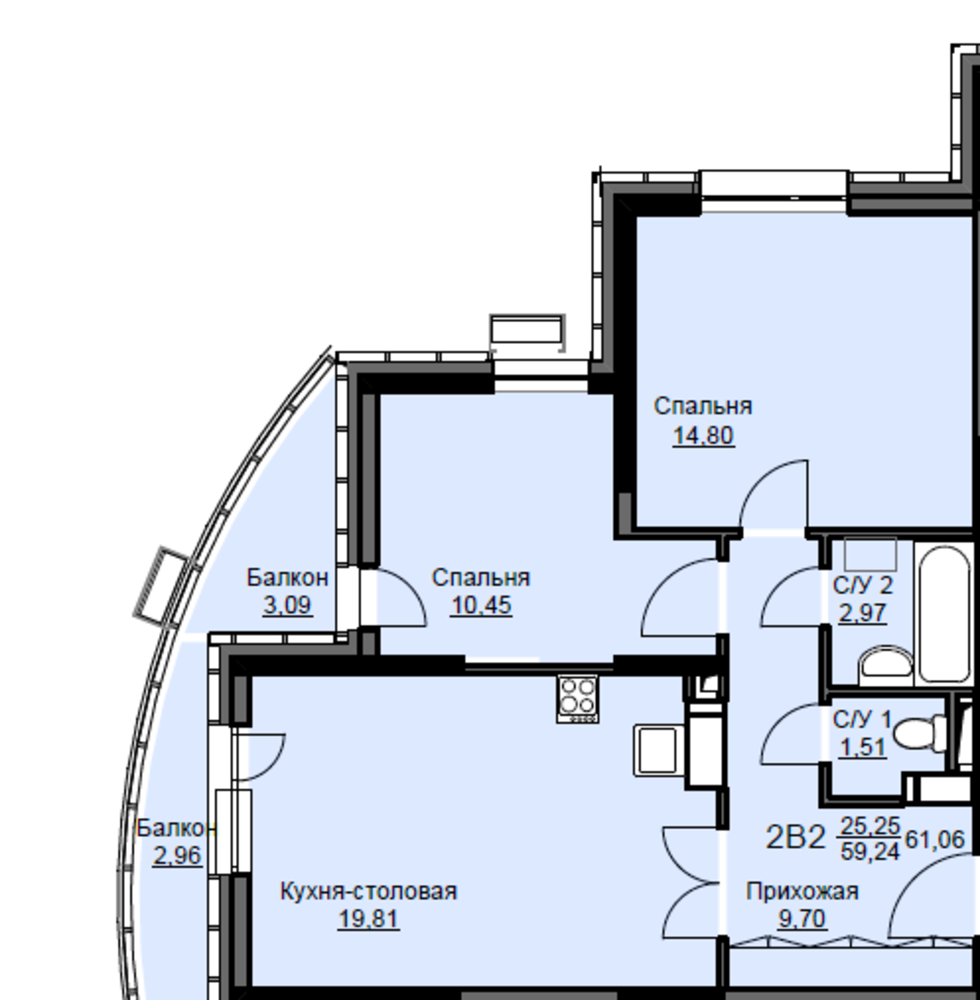 Общая площадь60.7 м2