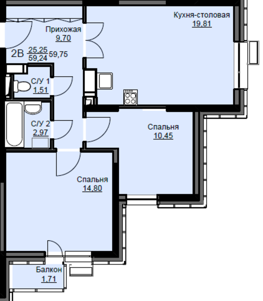 Площадь кухни19.81 м2