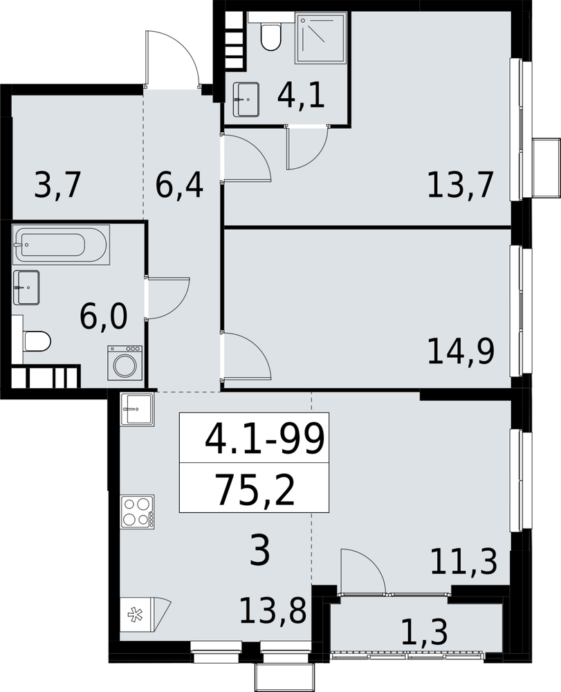3-комн. квартира с европланировкой и отделкой в ЖК "Южные сады" на 18 этаже. Общая площадь: 75.2 кв.м., жилая: 39.9 кв.м., суммарная площадь гостиной-столовой с кухонной зоной: 25.1 кв.м. Европланировка, кухня и гостиная объединены в одно просторное помещение. Квартира угловая, идеально подойдет любителям тишины и панорамных видов. В квартире одна лоджия, два совмещенных санузла. Высота потолков 2.95 м. Квартира находится в корпусе 4.1.1. Дом монолитный, одноподъездный, высотой 24 этажа. На этаже 6 квартир. В подъезде 1 пассажирский и 1 грузовой лифт. Начало строительства - 2 квартал 2024 года. Окончание строительства - 2 квартал 2027 года. Оформление сделки по договору долевого участия. В шаговой доступности от жилого комплекса расположены станции метро (расстояние по прямой): «Бунинская аллея» (1.0 км), «Улица Горчакова» (1.2 км), «Потапово» (1.6 км), «Бульвар адмирала Ушакова» (1.8 км). Новый проект "Южные сады" от застройщика "А101" будет построен на юге Москвы в пешей доступности от метро "Бунинская аллея". Дома будут возведены в окружении парков, а на территории комплекса будет выполнено благоустройство "Сады Средиземноморья" - тёплые оттенки и натуральные материалы покрытий, разнообразие плодовых и вечнозелёных деревьев, живые изгороди и эстетика средиземноморского сада. На первых этажах откроются магазины, кафе с летними террасами, фитнес-залы и салоны красоты. Для каждой группы домов фасады разработаны отдельно. Сочетание различных цветов и материалов привносит разнообразие и динамику в облик нового района. В отделке вентилируемых фасадов будут применяться качественные и долговечные материалы: штукатурка, облицовочная фасадная плитка разных размеров и текстур. Подъезды с витражным остеклением хорошо просматриваются со стороны двора. Естественное освещение днём и уютный вечерний свет создают ощущение «я дома» задолго до входа в квартиру, повышают комфорт и безопасность. Эксклюзивный авторский дизайн входных групп от Studio 211 созвучен природному окружению. Среди особенностей проекта московская прописка, школы и детские сады Южного Бутово, удобный выезд на СБВ, большой выбор квартир уникальных форматов - двухуровневые, квартиры с террасами. В каждой квартире предусмотрены летние помещения, просторные окна, высокие потолки. На ваш выбор застройщик предлагает как квартиры без отделки, с отделкой WHITE BOX, а также с дизайнерской отделкой. (AQID02393122)
