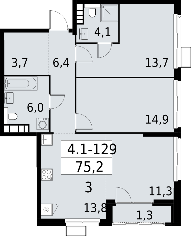 3 комнатная квартира