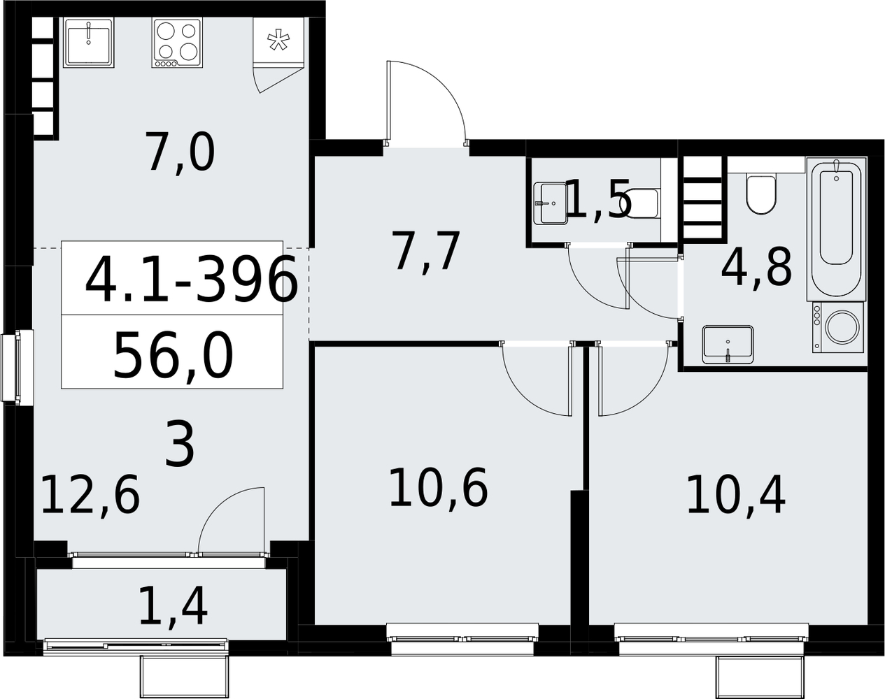 3 комнатная квартира