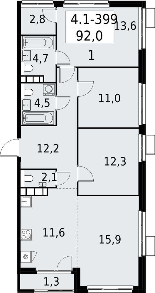 4 комнатная квартира