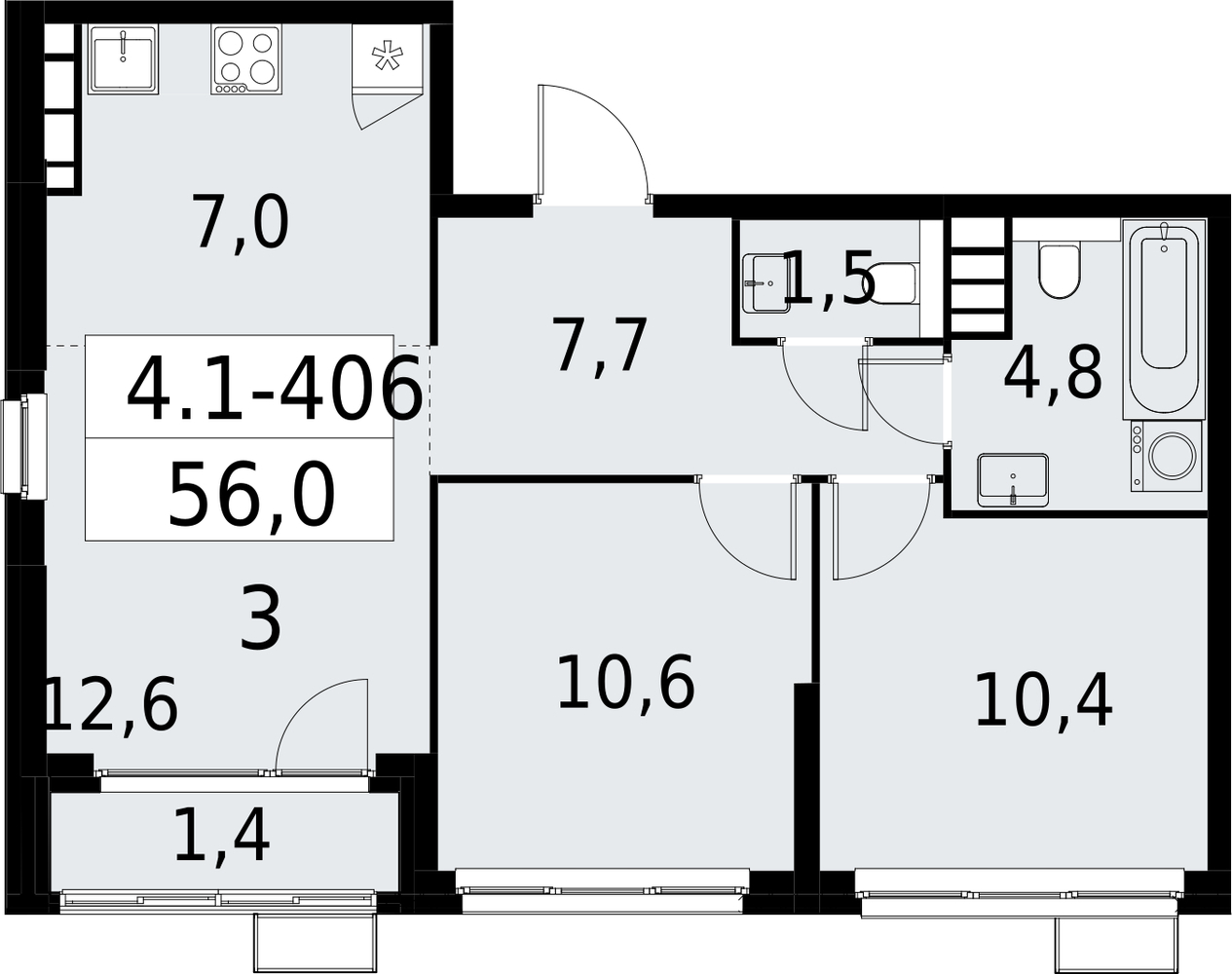 3 комнатная квартира