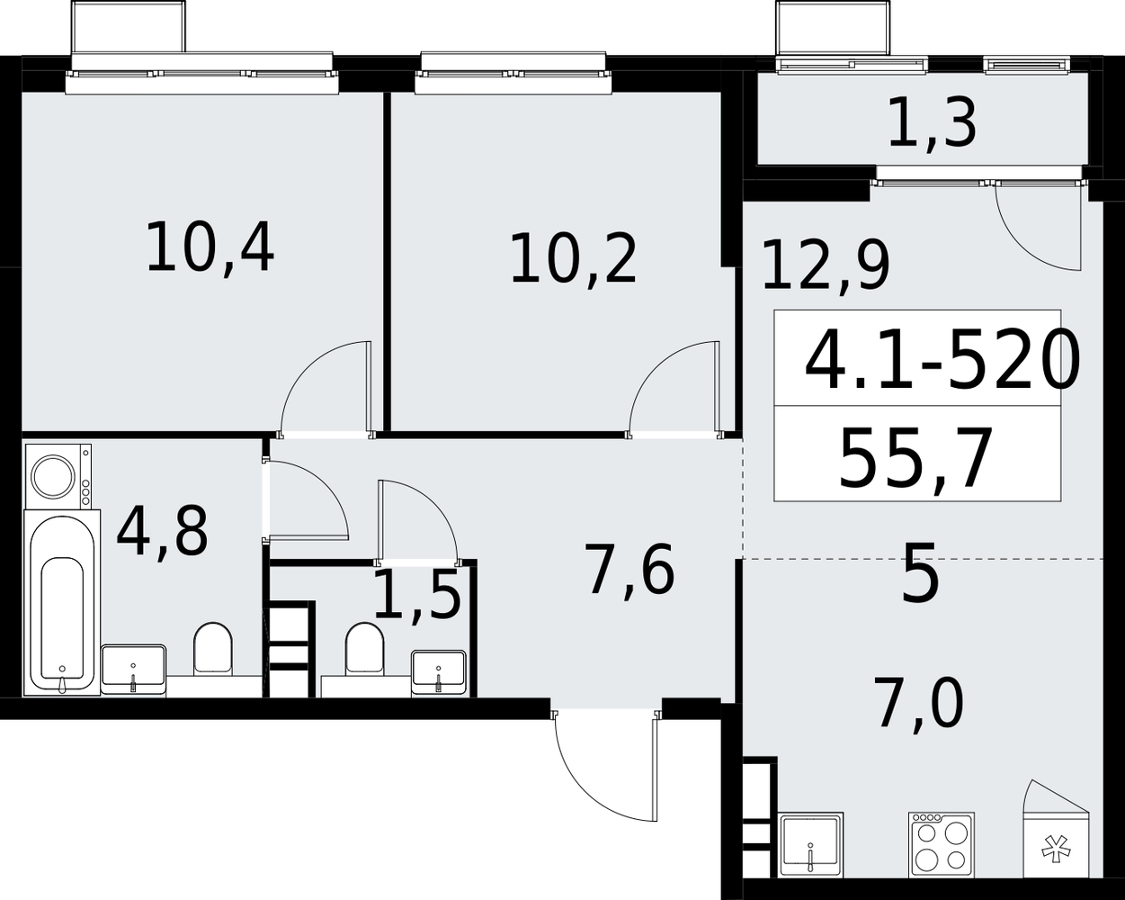 55.7 м2