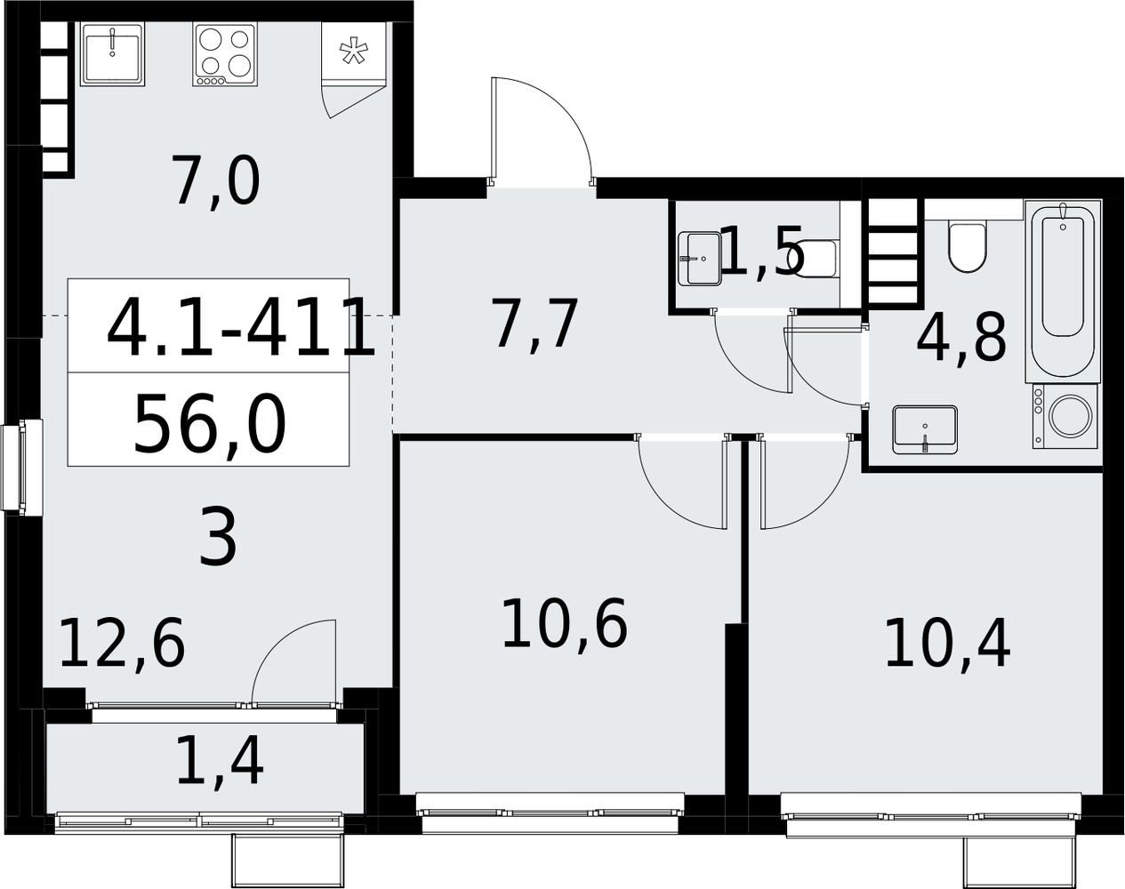 3 комнатная квартира