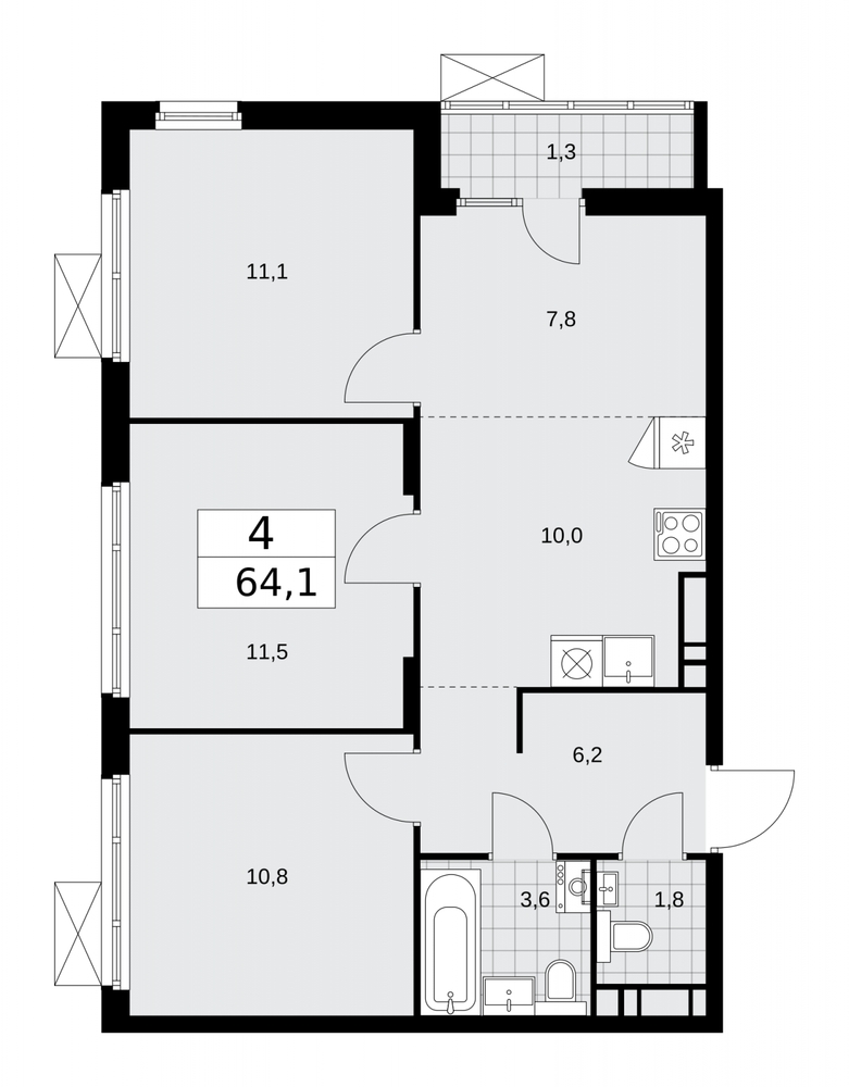 64.1 м2