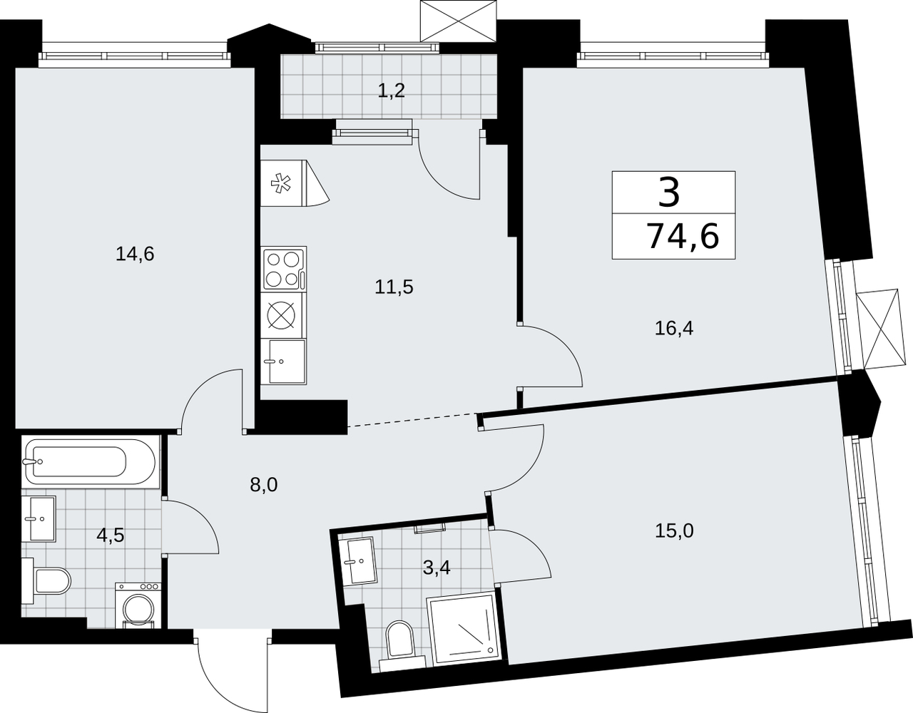 74.6 м2