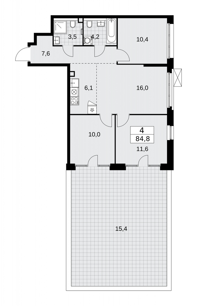 4-комн. квартира с европланировкой и отделкой в ЖК "Деснаречье" на 2 этаже. Общая площадь: 84.8 кв.м., жилая: 48 кв.м., суммарная площадь гостиной-столовой с кухонной зоной: 22.1 кв.м. Европланировка, кухня-гостиная - идеальный вариант для тех, кто любит часто принимать гостей. Угловая квартира, очень светлая, естественная вентиляция при открытии окон. В квартире один балкон, два совмещенных санузла. Терраса размером 15.4 кв.м. представляет собой роскошную зону отдыха для проведение вечеров в кругу семьи и друзей или организация вечеринок. Высота потолков 2.95 м. Квартира находится в корпусе 4.9. Дом монолитный, одноподъездный, высотой 15 этажей. На этаже 10 квартир. В подъезде 1 пассажирский и 1 грузовой лифт. Начало строительства - 3 квартал 2023 года. Окончание строительства - 2 квартал 2026 года. Оформление сделки по договору долевого участия. Масштабный проект "Деснаречье" на юго-западе Москвы, который включает три новых района («квартала»), объединённые общей идеей – воплотить в реальность мечты современных жителей столицы об интересном, комфортном и разноплановом городском пространстве в окружении рек и лесов, словно сошедших с полотен русских живописцев: - «Берег» оценят все, кому близка водная стихия: плеск волн, солнечные блики и прогулки вдоль тихого течения речи. - «Лес» утопает в зелени парков и лесов. Здесь соблюдён идеальный баланс загородного спокойствия и столичного комфорта. - «Парк», самый энергичный и яркий, отличается высокой концентрацией пространств для спорта и творчества. Жилой комплекс "Деснаречье" расположится в 12 км от МКАД по современному Калужскому шоссе. Внешний облик зданий соответствует современному стилю и стандартам, характерным и для других популярных проектов ГК «А101»: сочетание контрастных тонов, большое количество остекления, в котором отражается небо, гармония с природным окружением. Весь город - в вашем районе. Находиться на территории «15-минутного города» значит иметь всё необходимое для полноценной жизни в шаговой доступности. Маршруты в районе «Деснаречье» выстроены так, чтобы добраться до магазинов, парков, школ, салонов услуг и других объектов можно было всего за несколько минут пешком или на велосипеде. Двор закрытый от машин – это тишина, комфорт и безопасность, поэтому все машино-места (включая «семейные» и увеличенные, с возможностью установки роллетных шкафов) находятся в подземном паркинге. В паркинги можно спуститься на лифте из любого подъезда или по лестнице. Рядом с «Деснаречьем» в 2027 году планируется открытие станции метро «Десна», до которой будет удобно добраться пешком или на велосипеде. Дорога на автомобиле до перехватывающих парковок станций «Ольховая» и «Прокшино» займёт около 10 минут. В процессе реализации проекта будут появляться новые маршруты общественного транспорта по районам. Уже сейчас на Калужском шоссе развита сеть наземного транспорта: два десятка автобусов и маршрутных такси прибывают на остановки с интервалом 5–10 минут. (AQID02396115)