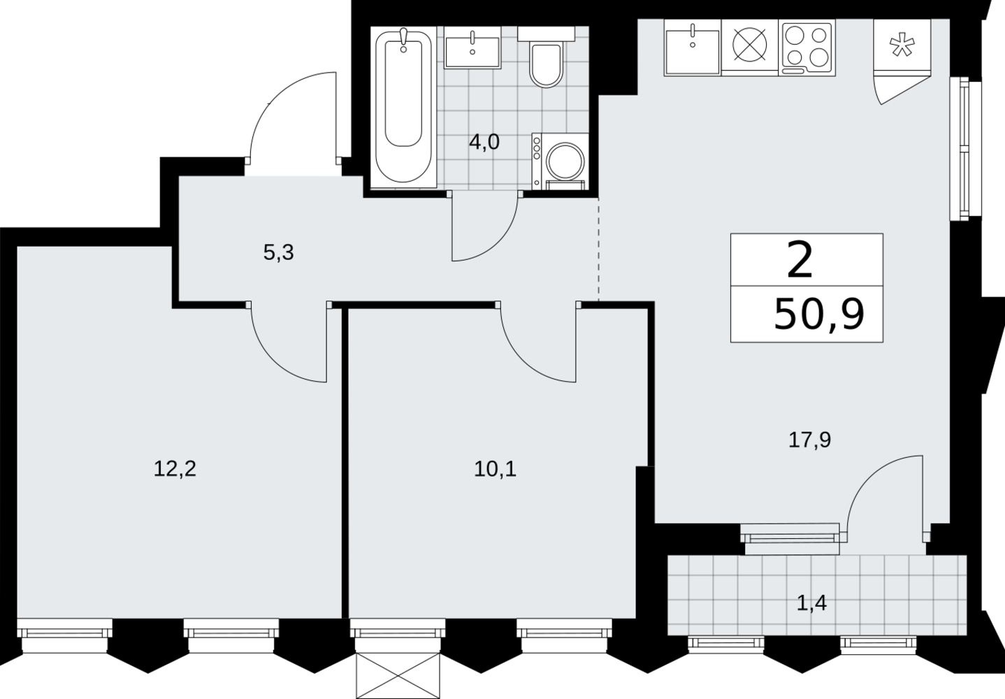 50.9 м2
