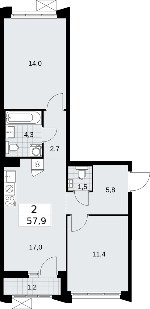 57.9 м2