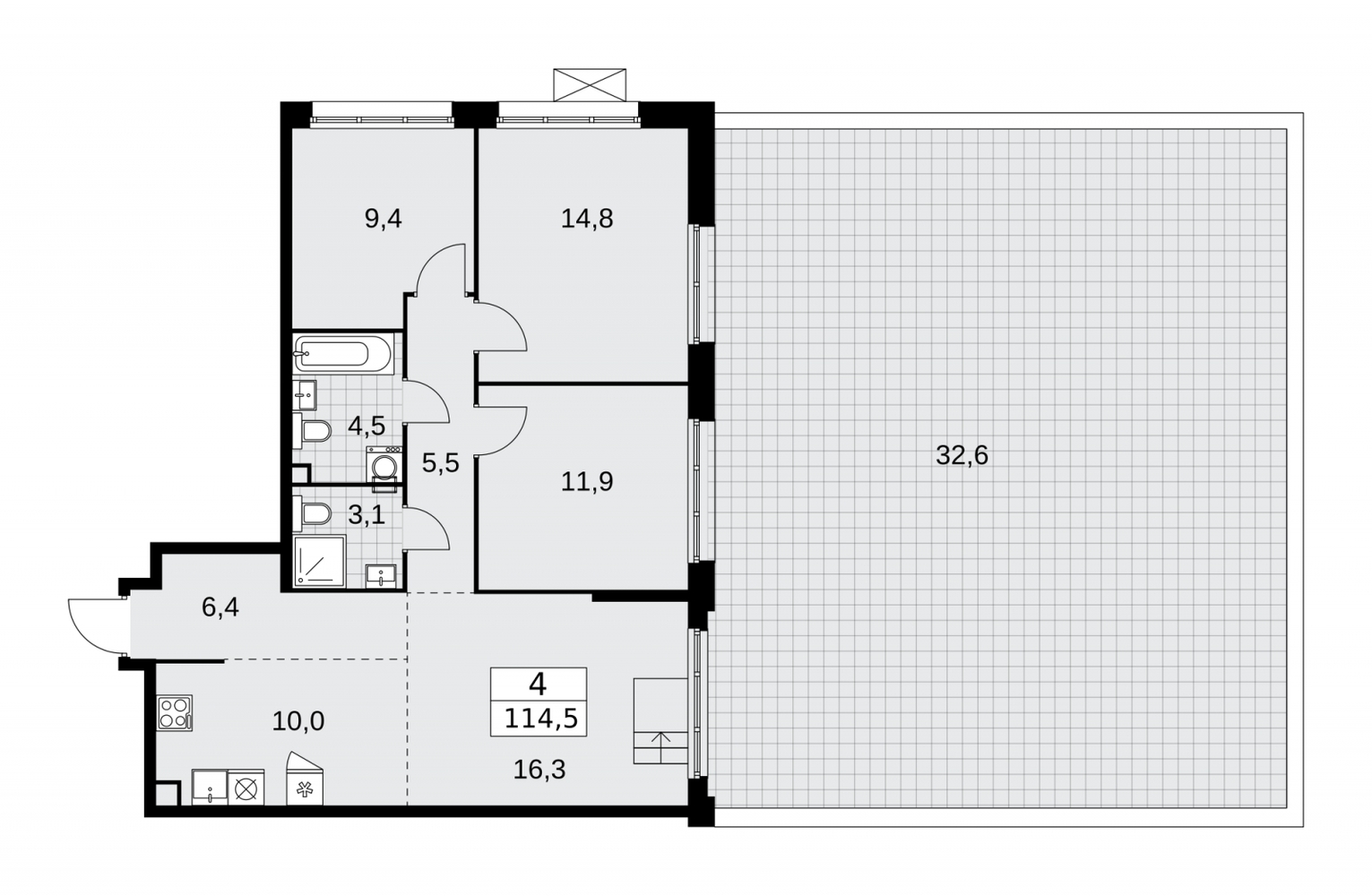 Четырехкомнатная квартира с европланировкой в ЖК "Деснаречье" на 2 этаже. Квартира без отделки, новый собственник может сделать ремонт по индивидуальному дизайн-проекту. Общая площадь: 114.5 кв.м., жилая: 52.4 кв.м., суммарная площадь гостиной-столовой с кухонной зоной: 26.3 кв.м. Европейская планировка, кухня и гостиная объединены в одно просторное помещение. Угловая квартира, очень светлая, естественная вентиляция при открытии окон. В квартире один балкон, два совмещенных санузла. Терраса площадью 32.6 кв.м. представляет собой роскошную зону отдыха, где вы на свой вкус можете создать атмосферу комфорта и уюта. Высота потолков 2.95 м. Квартира находится в корпусе 4.3. Дом монолитный, одноподъездный, высотой 15 этажей. На этаже 10 квартир. В подъезде 1 пассажирский и 1 грузовой лифт. Начало строительства - 3 квартал 2023 года. Окончание строительства - 1 квартал 2026 года. Оформление сделки по договору долевого участия. Масштабный проект "Деснаречье" на юго-западе Москвы, который включает три новых района («квартала»), объединённые общей идеей – воплотить в реальность мечты современных жителей столицы об интересном, комфортном и разноплановом городском пространстве в окружении рек и лесов, словно сошедших с полотен русских живописцев: - «Берег» оценят все, кому близка водная стихия: плеск волн, солнечные блики и прогулки вдоль тихого течения речи. - «Лес» утопает в зелени парков и лесов. Здесь соблюдён идеальный баланс загородного спокойствия и столичного комфорта. - «Парк», самый энергичный и яркий, отличается высокой концентрацией пространств для спорта и творчества. Жилой комплекс "Деснаречье" расположится в 12 км от МКАД по современному Калужскому шоссе. Внешний облик зданий соответствует современному стилю и стандартам, характерным и для других популярных проектов ГК «А101»: сочетание контрастных тонов, большое количество остекления, в котором отражается небо, гармония с природным окружением. Весь город - в вашем районе. Находиться на территории «15-минутного города» значит иметь всё необходимое для полноценной жизни в шаговой доступности. Маршруты в районе «Деснаречье» выстроены так, чтобы добраться до магазинов, парков, школ, салонов услуг и других объектов можно было всего за несколько минут пешком или на велосипеде. Двор закрытый от машин – это тишина, комфорт и безопасность, поэтому все машино-места (включая «семейные» и увеличенные, с возможностью установки роллетных шкафов) находятся в подземном паркинге. В паркинги можно спуститься на лифте из любого подъезда или по лестнице. Рядом с «Деснаречьем» в 2027 году планируется открытие станции метро «Десна», до которой будет удобно добраться пешком или на велосипеде. Дорога на автомобиле до перехватывающих парковок станций «Ольховая» и «Прокшино» займёт около 10 минут. В процессе реализации проекта будут появляться новые маршруты общественного транспорта по районам. Уже сейчас на Калужском шоссе развита сеть наземного транспорта: два десятка автобусов и маршрутных такси прибывают на остановки с интервалом 5–10 минут. (AQID02481002)