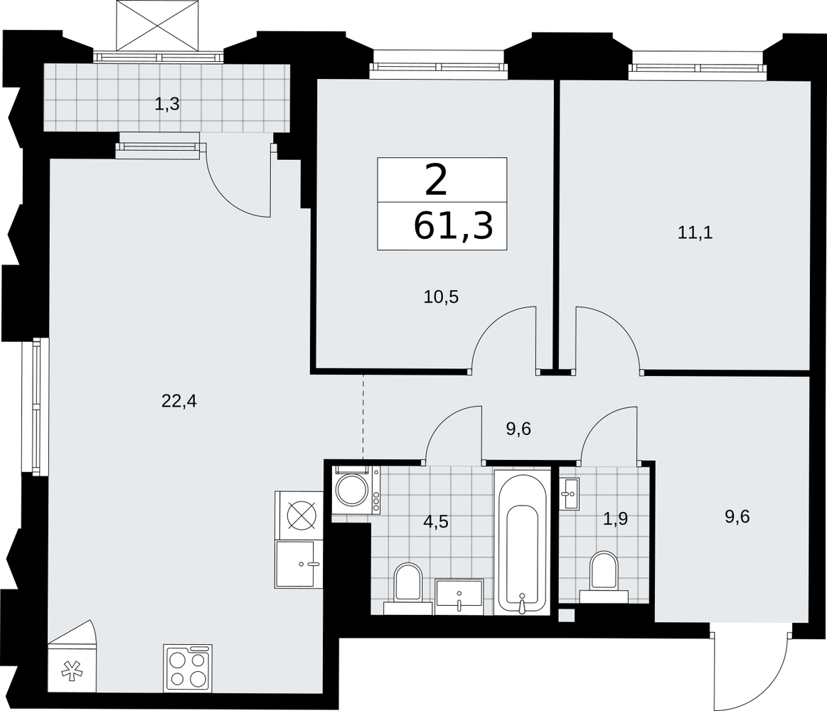 61.3 м2