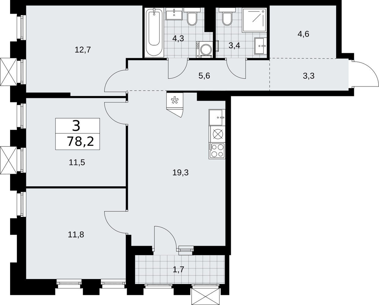 3 комнатная квартира