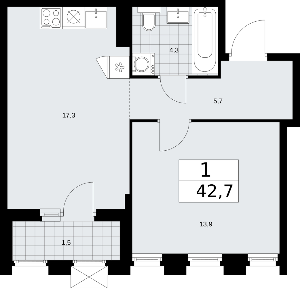 Продается однокомнатная квартира с отделкой в ЖК "Деснаречье" на 22 этаже. Общая площадь: 42.7 кв.м., жилая: 13.9 кв.м., площадь просторной кухни-столовой: 17.3 кв.м. Все окна выходят на одну сторону. В квартире одна лоджия, один совмещенный санузел. Высота потолков 2.95 м. Квартира находится в корпусе 7.4. Дом монолитный, одноподъездный, высотой 22 этажа. На этаже 9 квартир. В подъезде 1 пассажирский и 2 грузовых лифта. Начало строительства - 2 квартал 2025 года. Окончание строительства - 1 квартал 2028 года. Оформление сделки по договору долевого участия. Масштабный проект "Деснаречье" на юго-западе Москвы, который включает три новых района («квартала»), объединённые общей идеей – воплотить в реальность мечты современных жителей столицы об интересном, комфортном и разноплановом городском пространстве в окружении рек и лесов, словно сошедших с полотен русских живописцев: - «Берег» оценят все, кому близка водная стихия: плеск волн, солнечные блики и прогулки вдоль тихого течения речи. - «Лес» утопает в зелени парков и лесов. Здесь соблюдён идеальный баланс загородного спокойствия и столичного комфорта. - «Парк», самый энергичный и яркий, отличается высокой концентрацией пространств для спорта и творчества. Жилой комплекс "Деснаречье" расположится в 12 км от МКАД по современному Калужскому шоссе. Внешний облик зданий соответствует современному стилю и стандартам, характерным и для других популярных проектов ГК «А101»: сочетание контрастных тонов, большое количество остекления, в котором отражается небо, гармония с природным окружением. Весь город - в вашем районе. Находиться на территории «15-минутного города» значит иметь всё необходимое для полноценной жизни в шаговой доступности. Маршруты в районе «Деснаречье» выстроены так, чтобы добраться до магазинов, парков, школ, салонов услуг и других объектов можно было всего за несколько минут пешком или на велосипеде. Двор закрытый от машин – это тишина, комфорт и безопасность, поэтому все машино-места (включая «семейные» и увеличенные, с возможностью установки роллетных шкафов) находятся в подземном паркинге. В паркинги можно спуститься на лифте из любого подъезда или по лестнице. Рядом с «Деснаречьем» в 2027 году планируется открытие станции метро «Десна», до которой будет удобно добраться пешком или на велосипеде. Дорога на автомобиле до перехватывающих парковок станций «Ольховая» и «Прокшино» займёт около 10 минут. В процессе реализации проекта будут появляться новые маршруты общественного транспорта по районам. Уже сейчас на Калужском шоссе развита сеть наземного транспорта: два десятка автобусов и маршрутных такси прибывают на остановки с интервалом 5–10 минут. (AQID02493046)