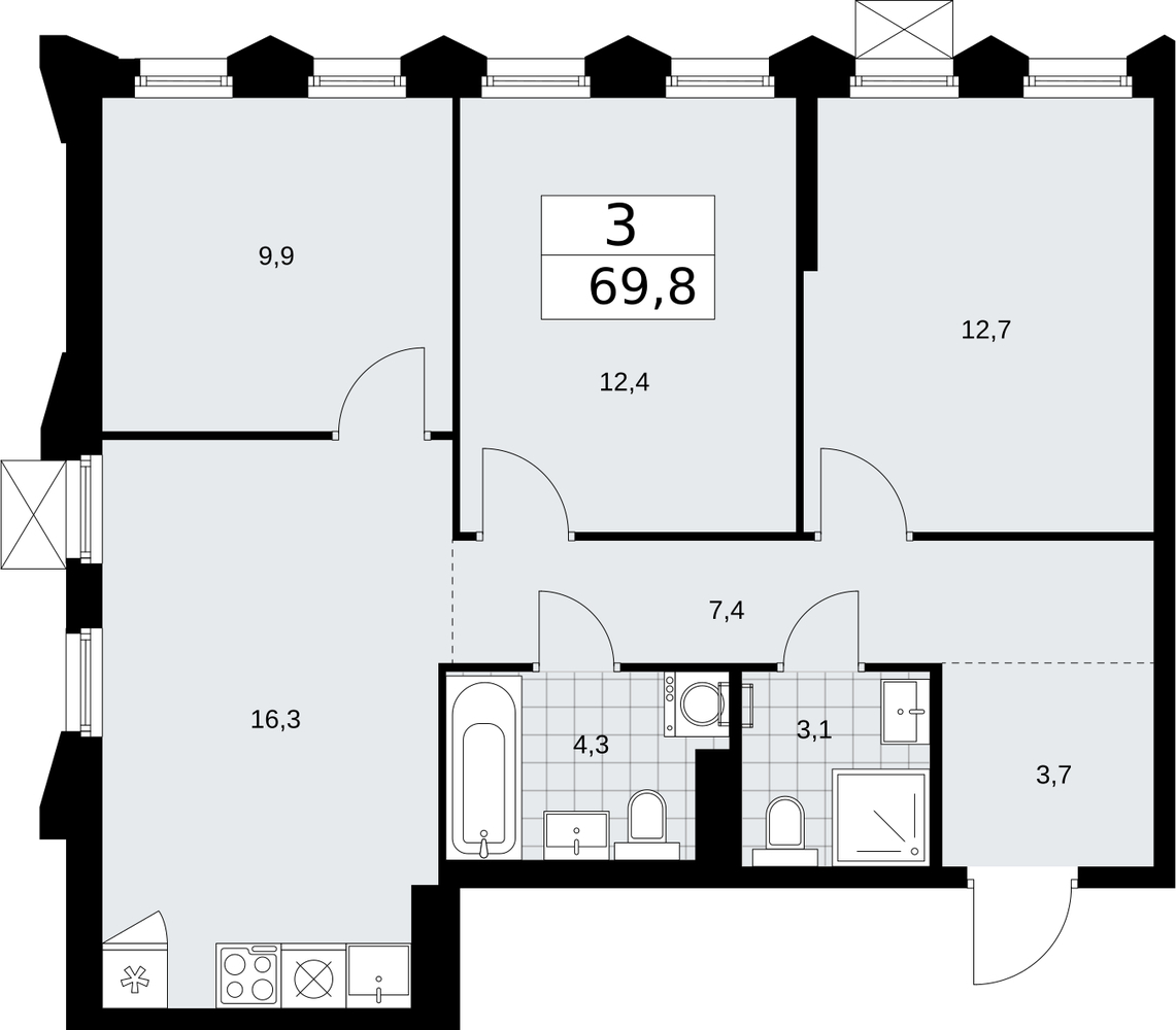 3-комн. квартира от застройщика с отделкой в ЖК "Деснаречье" на 11 этаже. Общая площадь: 69.8 кв.м., жилая: 35 кв.м., площадь просторной кухни-столовой: 16.3 кв.м. Угловая квартира, окна oбecпeчивaют paвнoмepнoe ocвeщeниe в тeчeниe дня. В квартире два совмещенных санузла. Высота потолков 2.95 м. Дом монолитный, трехподъездный, переменной этажности, от 11 до 17 этажей. Квартира находится в 1-й секции высотой 11 этажей в корпусе 7.5. На этаже 5 квартир. В подъезде 1 пассажирский и 1 грузовой лифт. Начало строительства - 2 квартал 2025 года. Окончание строительства - 1 квартал 2028 года. Оформление сделки по договору долевого участия. Масштабный проект "Деснаречье" на юго-западе Москвы, который включает три новых района («квартала»), объединённые общей идеей – воплотить в реальность мечты современных жителей столицы об интересном, комфортном и разноплановом городском пространстве в окружении рек и лесов, словно сошедших с полотен русских живописцев: - «Берег» оценят все, кому близка водная стихия: плеск волн, солнечные блики и прогулки вдоль тихого течения речи. - «Лес» утопает в зелени парков и лесов. Здесь соблюдён идеальный баланс загородного спокойствия и столичного комфорта. - «Парк», самый энергичный и яркий, отличается высокой концентрацией пространств для спорта и творчества. Жилой комплекс "Деснаречье" расположится в 12 км от МКАД по современному Калужскому шоссе. Внешний облик зданий соответствует современному стилю и стандартам, характерным и для других популярных проектов ГК «А101»: сочетание контрастных тонов, большое количество остекления, в котором отражается небо, гармония с природным окружением. Весь город - в вашем районе. Находиться на территории «15-минутного города» значит иметь всё необходимое для полноценной жизни в шаговой доступности. Маршруты в районе «Деснаречье» выстроены так, чтобы добраться до магазинов, парков, школ, салонов услуг и других объектов можно было всего за несколько минут пешком или на велосипеде. Двор закрытый от машин – это тишина, комфорт и безопасность, поэтому все машино-места (включая «семейные» и увеличенные, с возможностью установки роллетных шкафов) находятся в подземном паркинге. В паркинги можно спуститься на лифте из любого подъезда или по лестнице. Рядом с «Деснаречьем» в 2027 году планируется открытие станции метро «Десна», до которой будет удобно добраться пешком или на велосипеде. Дорога на автомобиле до перехватывающих парковок станций «Ольховая» и «Прокшино» займёт около 10 минут. В процессе реализации проекта будут появляться новые маршруты общественного транспорта по районам. Уже сейчас на Калужском шоссе развита сеть наземного транспорта: два десятка автобусов и маршрутных такси прибывают на остановки с интервалом 5–10 минут. (AQID02493091)