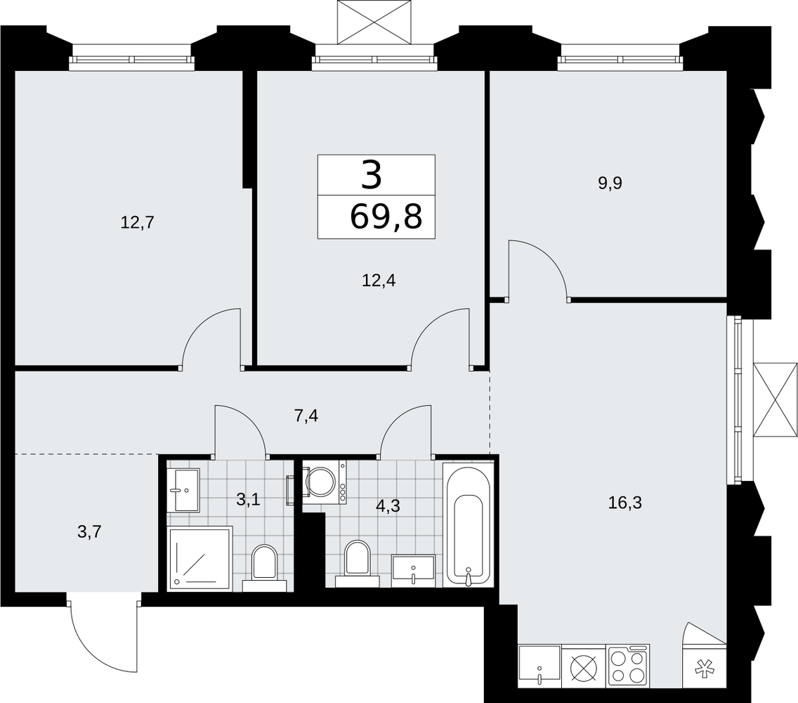 Просторная 3-комн. квартира с отделкой в ЖК "Деснаречье" на 14 этаже. Общая площадь: 69.8 кв.м., жилая: 35 кв.м., площадь просторной кухни-столовой: 16.3 кв.м. Квартира угловая, очень светлая, естественная вентиляция при открытии окон. В квартире два совмещенных санузла. Высота потолков 2.95 м. Дом монолитный, трехподъездный, переменной этажности, от 11 до 17 этажей. Квартира находится в 3-й секции высотой 14 этажей в корпусе 7.5. На этаже 5 квартир. В подъезде 1 пассажирский и 1 грузовой лифт. Начало строительства - 2 квартал 2025 года. Окончание строительства - 1 квартал 2028 года. Оформление сделки по договору долевого участия. Масштабный проект "Деснаречье" на юго-западе Москвы, который включает три новых района («квартала»), объединённые общей идеей – воплотить в реальность мечты современных жителей столицы об интересном, комфортном и разноплановом городском пространстве в окружении рек и лесов, словно сошедших с полотен русских живописцев: - «Берег» оценят все, кому близка водная стихия: плеск волн, солнечные блики и прогулки вдоль тихого течения речи. - «Лес» утопает в зелени парков и лесов. Здесь соблюдён идеальный баланс загородного спокойствия и столичного комфорта. - «Парк», самый энергичный и яркий, отличается высокой концентрацией пространств для спорта и творчества. Жилой комплекс "Деснаречье" расположится в 12 км от МКАД по современному Калужскому шоссе. Внешний облик зданий соответствует современному стилю и стандартам, характерным и для других популярных проектов ГК «А101»: сочетание контрастных тонов, большое количество остекления, в котором отражается небо, гармония с природным окружением. Весь город - в вашем районе. Находиться на территории «15-минутного города» значит иметь всё необходимое для полноценной жизни в шаговой доступности. Маршруты в районе «Деснаречье» выстроены так, чтобы добраться до магазинов, парков, школ, салонов услуг и других объектов можно было всего за несколько минут пешком или на велосипеде. Двор закрытый от машин – это тишина, комфорт и безопасность, поэтому все машино-места (включая «семейные» и увеличенные, с возможностью установки роллетных шкафов) находятся в подземном паркинге. В паркинги можно спуститься на лифте из любого подъезда или по лестнице. Рядом с «Деснаречьем» в 2027 году планируется открытие станции метро «Десна», до которой будет удобно добраться пешком или на велосипеде. Дорога на автомобиле до перехватывающих парковок станций «Ольховая» и «Прокшино» займёт около 10 минут. В процессе реализации проекта будут появляться новые маршруты общественного транспорта по районам. Уже сейчас на Калужском шоссе развита сеть наземного транспорта: два десятка автобусов и маршрутных такси прибывают на остановки с интервалом 5–10 минут. (AQID02493193)