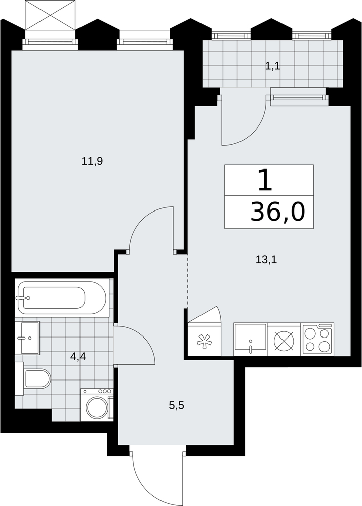 1 комнатная квартира