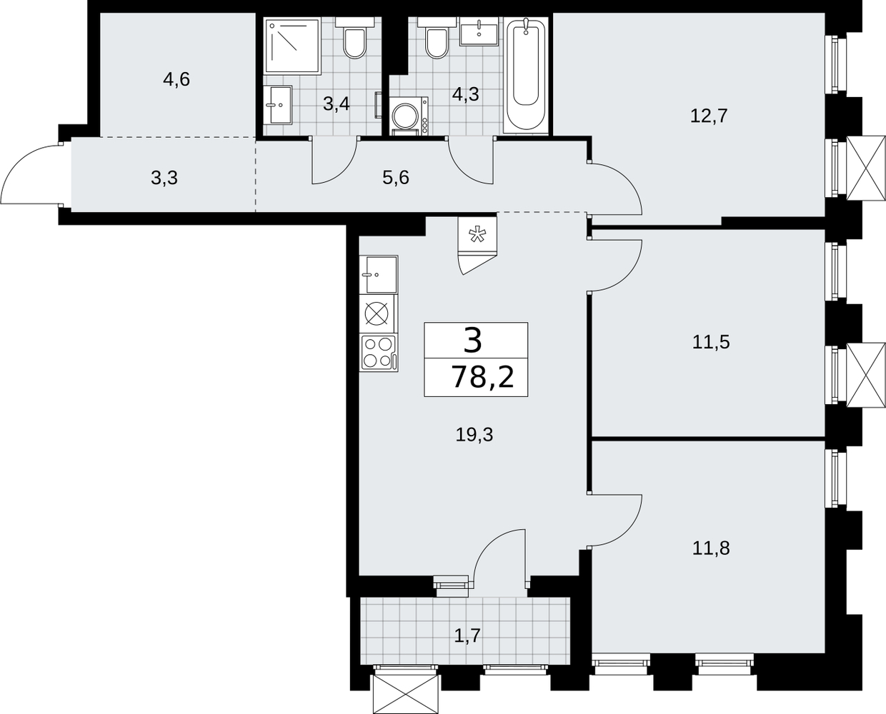 Трехкомнатная квартира с отделкой в ЖК "Деснаречье" на 17 этаже. Общая площадь: 78.2 кв.м., жилая: 36 кв.м., площадь просторной кухни-столовой: 19.3 кв.м. Угловая квартира, очень светлая, естественная вентиляция при открытии окон. В квартире одна лоджия, два совмещенных санузла. Высота потолков 2.95 м. Квартира находится в корпусе 7.7. Дом монолитный, одноподъездный, высотой 22 этажа. На этаже 9 квартир. В подъезде 1 пассажирский и 2 грузовых лифта. Начало строительства - 2 квартал 2025 года. Окончание строительства - 1 квартал 2028 года. Оформление сделки по договору долевого участия. Масштабный проект "Деснаречье" на юго-западе Москвы, который включает три новых района («квартала»), объединённые общей идеей – воплотить в реальность мечты современных жителей столицы об интересном, комфортном и разноплановом городском пространстве в окружении рек и лесов, словно сошедших с полотен русских живописцев: - «Берег» оценят все, кому близка водная стихия: плеск волн, солнечные блики и прогулки вдоль тихого течения речи. - «Лес» утопает в зелени парков и лесов. Здесь соблюдён идеальный баланс загородного спокойствия и столичного комфорта. - «Парк», самый энергичный и яркий, отличается высокой концентрацией пространств для спорта и творчества. Жилой комплекс "Деснаречье" расположится в 12 км от МКАД по современному Калужскому шоссе. Внешний облик зданий соответствует современному стилю и стандартам, характерным и для других популярных проектов ГК «А101»: сочетание контрастных тонов, большое количество остекления, в котором отражается небо, гармония с природным окружением. Весь город - в вашем районе. Находиться на территории «15-минутного города» значит иметь всё необходимое для полноценной жизни в шаговой доступности. Маршруты в районе «Деснаречье» выстроены так, чтобы добраться до магазинов, парков, школ, салонов услуг и других объектов можно было всего за несколько минут пешком или на велосипеде. Двор закрытый от машин – это тишина, комфорт и безопасность, поэтому все машино-места (включая «семейные» и увеличенные, с возможностью установки роллетных шкафов) находятся в подземном паркинге. В паркинги можно спуститься на лифте из любого подъезда или по лестнице. Рядом с «Деснаречьем» в 2027 году планируется открытие станции метро «Десна», до которой будет удобно добраться пешком или на велосипеде. Дорога на автомобиле до перехватывающих парковок станций «Ольховая» и «Прокшино» займёт около 10 минут. В процессе реализации проекта будут появляться новые маршруты общественного транспорта по районам. Уже сейчас на Калужском шоссе развита сеть наземного транспорта: два десятка автобусов и маршрутных такси прибывают на остановки с интервалом 5–10 минут. (AQID02493428)