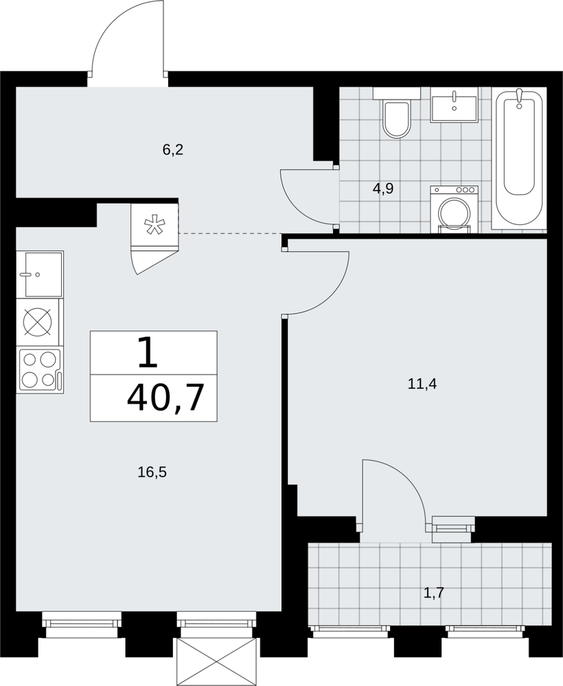 40.7 м2