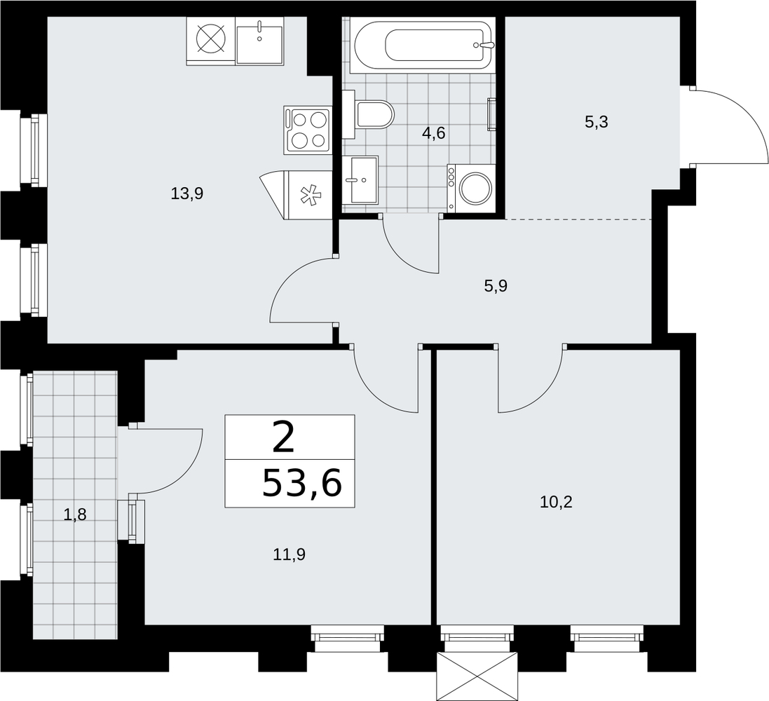 53.6 м2