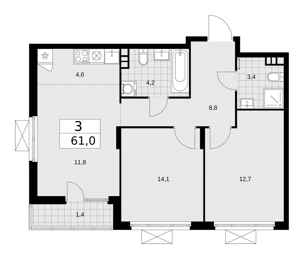 61.0 м2