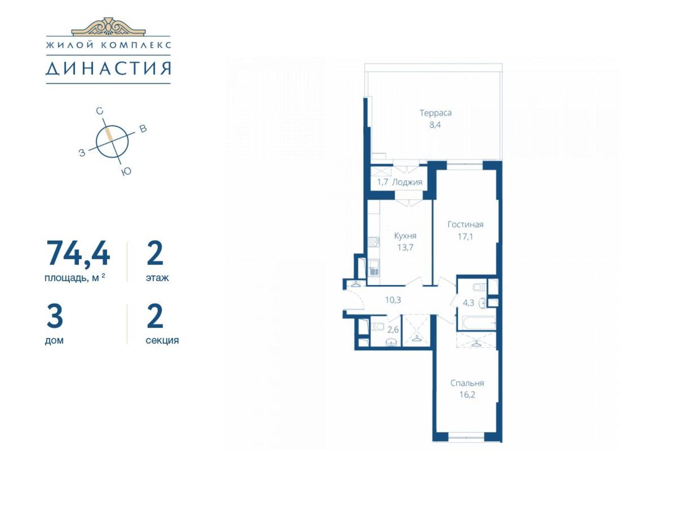 Продается 2-комнатная квартира в ЖК Династия на 2 этаже. Общая площадь квартиры составляет 74,4 кв.м. Квартира без отделки. Жилой комплекс «Династия» объединяет три дома переменной этажности. Дома расположены по периметру участка, образуя закрытый двор площадью 2 га. Концепция благоустройства дворовой территории — «Парк отдыха в миниатюре». В её основе — наиболее успешные российские и международные решения досуга под открытым небом: городских пространств, набережных и парков. Архитектурная концепция жилого комплекса — тонко переосмысленная тема монументальной классики. Комбинация элементов ампира, эклектики и ар-деко в актуальном прочтении архитекторов Sezar Group органичны восприятию всех поколений. Ваша дорога в жилой комплекс «Династия» из любой точки города будет легкой и приятной. Вариативность маршрутов автомобильным и общественным транспортом позволяет Вам выбрать максимально комфортный и быстрый путь. Одна из главных достопримечательностей жилого комплекса — просторный двор-патио, полностью закрытый от посторонних глаз «личный» парк для жителей «Династии». Площадки для малышей и тех, кто считает себя «уже совсем взрослым», просторные газоны с цветниками, амфитеатр и скейт-парк, — все условия для интересных прогулок и игр доступны внутри комплекса. Лобби жилого комплекса «Династия» — просторные холлы. Дизайн каждого — уникальный авторский проект. Каждый интерьер — произведение искусства, где множество деталей, но нет ничего лишнего. Благородные материалы выгодно подчеркивают силуэт пространства, а стильные аксессуары дополняют образ истинной респектабельности и особого статуса, заметных даже искушенному взгляду. Квартира представлена со свободной планировкой без несущих пилонов, что обеспечивает максимально широкие возможности для создания интерьера. Перспектива из окон, словно магия театра, завораживает сменой декораций: буйство красок и ароматов в летние дни, сменяют дыхание осенней свежести, новогодняя сказка и весеннее пробуждение. К услугам жителей — двухуровневый подземный паркинг с автоматизированной системой доступа на территорию. Посетители ЖК «Династия» смогут воспользоваться гостевой автостоянкой. В паркинге предусмотрена система зарядки электромобилей, что, несомненно, оценят те, для кого автомобиль — не просто средство передвижения, а настоящая страсть. На подземном уровне предусмотрены кладовые помещения, где можно хранить велосипеды, сезонные шины или даже лодку. Узнайте больше информации о комплексе в офисе продаж и станьте обладателем эксклюзивного предложения от наших менеджеров.