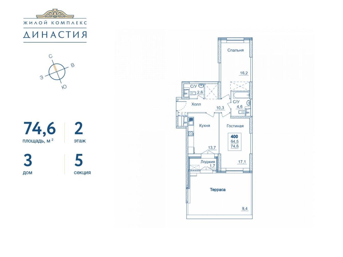 Продается 2-комнатная квартира в ЖК Династия на 2 этаже. Общая площадь квартиры составляет 74,6 кв.м. Квартира без отделки. Жилой комплекс «Династия» объединяет три дома переменной этажности. Дома расположены по периметру участка, образуя закрытый двор площадью 2 га. Концепция благоустройства дворовой территории — «Парк отдыха в миниатюре». В её основе — наиболее успешные российские и международные решения досуга под открытым небом: городских пространств, набережных и парков. Архитектурная концепция жилого комплекса — тонко переосмысленная тема монументальной классики. Комбинация элементов ампира, эклектики и ар-деко в актуальном прочтении архитекторов Sezar Group органичны восприятию всех поколений. Ваша дорога в жилой комплекс «Династия» из любой точки города будет легкой и приятной. Вариативность маршрутов автомобильным и общественным транспортом позволяет Вам выбрать максимально комфортный и быстрый путь. Одна из главных достопримечательностей жилого комплекса — просторный двор-патио, полностью закрытый от посторонних глаз «личный» парк для жителей «Династии». Площадки для малышей и тех, кто считает себя «уже совсем взрослым», просторные газоны с цветниками, амфитеатр и скейт-парк, — все условия для интересных прогулок и игр доступны внутри комплекса. Лобби жилого комплекса «Династия» — просторные холлы. Дизайн каждого — уникальный авторский проект. Каждый интерьер — произведение искусства, где множество деталей, но нет ничего лишнего. Благородные материалы выгодно подчеркивают силуэт пространства, а стильные аксессуары дополняют образ истинной респектабельности и особого статуса, заметных даже искушенному взгляду. Квартира представлена со свободной планировкой без несущих пилонов, что обеспечивает максимально широкие возможности для создания интерьера. Перспектива из окон, словно магия театра, завораживает сменой декораций: буйство красок и ароматов в летние дни, сменяют дыхание осенней свежести, новогодняя сказка и весеннее пробуждение. К услугам жителей — двухуровневый подземный паркинг с автоматизированной системой доступа на территорию. Посетители ЖК «Династия» смогут воспользоваться гостевой автостоянкой. В паркинге предусмотрена система зарядки электромобилей, что, несомненно, оценят те, для кого автомобиль — не просто средство передвижения, а настоящая страсть. На подземном уровне предусмотрены кладовые помещения, где можно хранить велосипеды, сезонные шины или даже лодку. Узнайте больше информации о комплексе в офисе продаж и станьте обладателем эксклюзивного предложения от наших менеджеров.